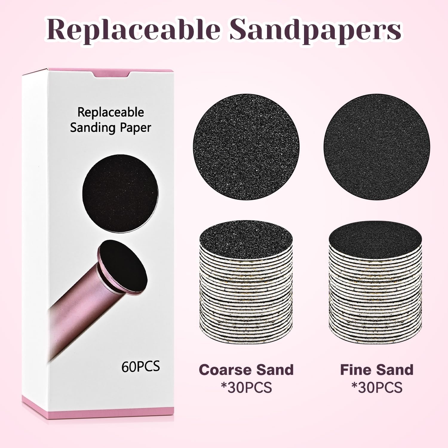 【Abundant Accessories】Configures 60PCS replaceable sandpapers, one small brush, one scraper and one box of blades to provide an excellent foot care experience. Replace a new sandpaper after each use, clean and sanitary. If any question, please feel free to contact us, we will help you solve the problem right away