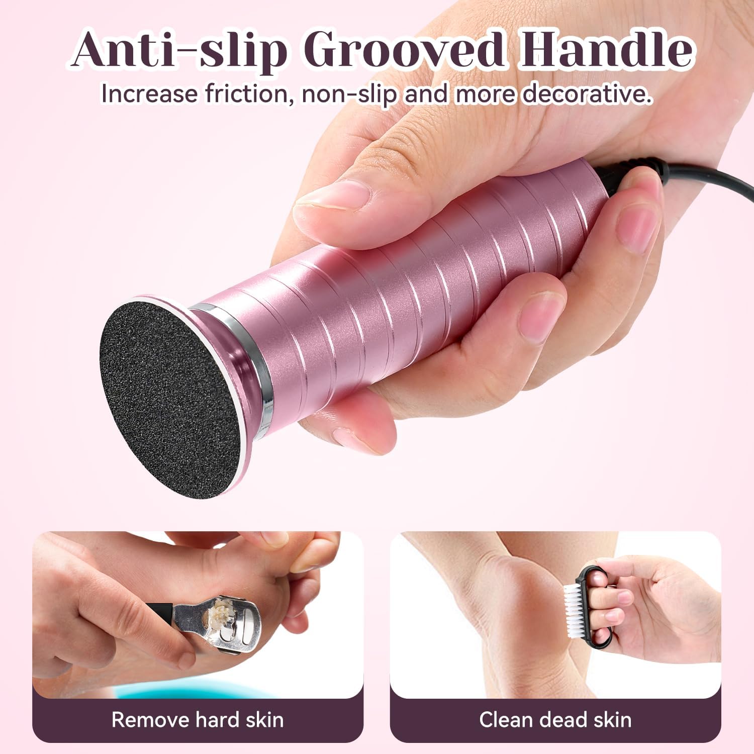 【Anti-slip & Portable Design】Different from other slippery foot sander, our electronic foot file is designed with grooved handle, easy to grab and use. Compact modeling and small size, the pedicure tool can be easily put in your bags for travel, commute and etc