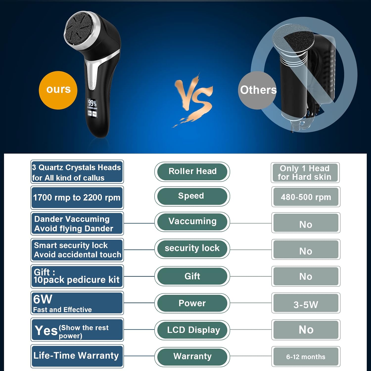 Electric Callus Remover for Feet (with Dander Vacuum), with 3Head&LCD Display